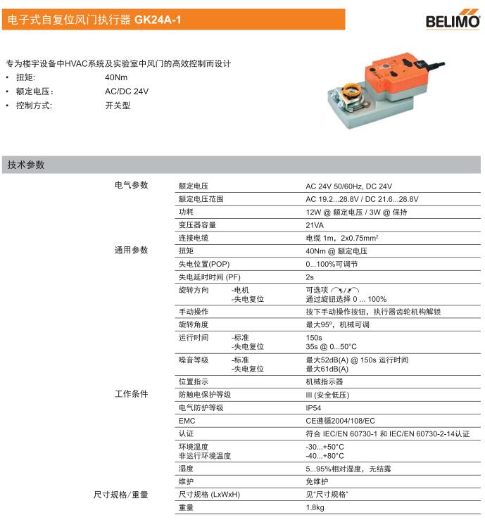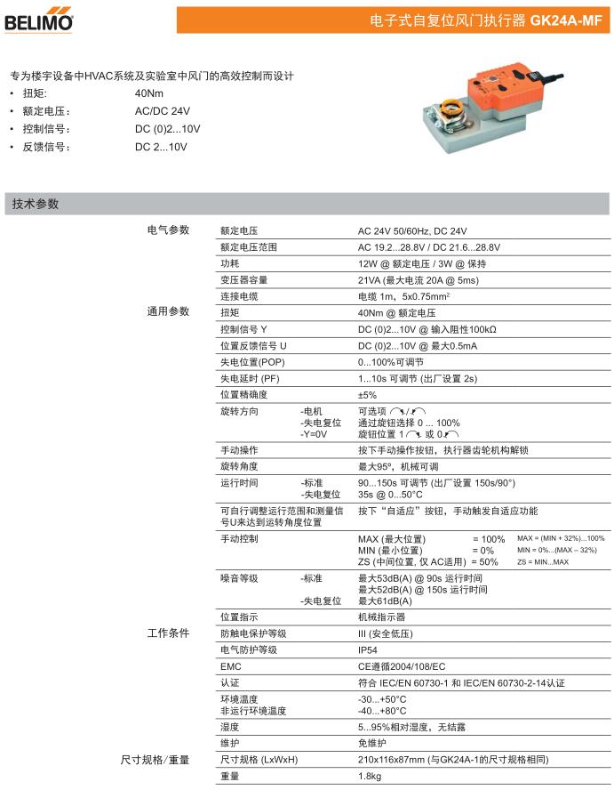 • GK24A電子式自復位風門執行器