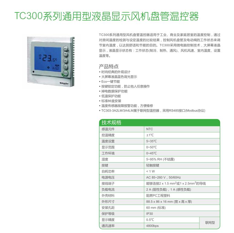 • TC300系列通用型液晶顯示風機盤管溫控器